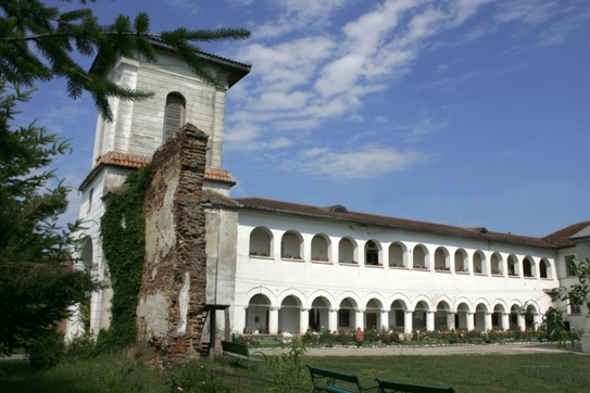 La leatul 1699, domnitorul Şerban Cantacuzino, strănepot al lui Radu Şerban, a început restaurarea Mânăstirii Comana. La această restaurare, el a adăugat chilii noi la cele existente, a reparat şi a înălţat zidul şi a împodobit construcţia cu elegantul foişor de pe latura de Miazănoapte. Înălţându-se din frumoasa balustradă, zece coloane îl împodobesc pe cele trei laturi. Coloana de piatră tare, dintr-o singură bucată, împodobeşte, la capitel şi bază, cu ornamente vegetale. Două dintre cele două coloane, aflate la extremităţi, sunt încastrate în zidul clădirii şi au capitelul împodobit cu vulturul bicefal, însemnul familiei Cantacuzino. Susţinând arcuri de cărămidă în semicerc, cele zece coloane dau o notă de o frumuseţe aparte întregului edificiu.