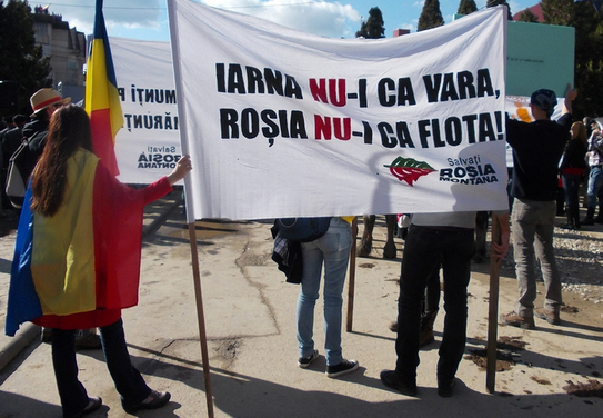 Manifestanţii veniţi din diverse oraşe ale ţării, incluzând Cluj Napoca, Bistriţa, Oradea, Bucureşti, Sibiu, Braşov, Timişoara, s-au “înarmat” cu costume populare, bannere, fluiere, buciume din plastic, clopote, aparate foto şi mai ales cu un spirit înflăcărat şi dornic să facă ceva pentru ţara lor. Printre sloganele strigate sau scrise pe bannere au fost “Nu corporaţia face legislaţia”, “Uniţi salvăm Roşia Montană”, “Uniţi salvăm Munţii Apuseni”, “După mină, potopul!”, “Nu dăm aurul din munţi pe cianuri şi bani mărunţi.”