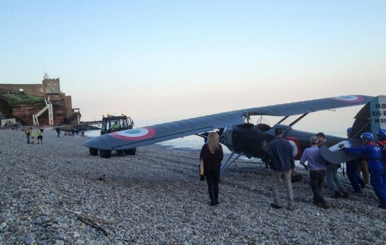 Pilotul Zac Rockey, în vârstă de 47 de ani, a fost obligat să efectueze o aterizare forţată pe o plajă din Sidmouth, Devon, Anglia. În timpul zborului, un avion din anii 1930 a avut o avarie la motor, care brusc nu a mai funcţionat, nelăsând altă posibilitate pilotului decât să facă o aterizare de urgenţă pe plajă.