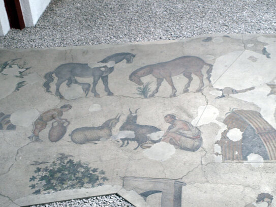 Săpăturile arheologice efectuate în perioada anilor 1935-1938 au scos la iveală mozaicuri care, după restaurare au fost expuse în muzeu. Apoi în anii ce au urmat, au fost aduse şi alte mozaicuri descoperite cu ocazia săpăturilor efectuate în diverse alte locuri.
