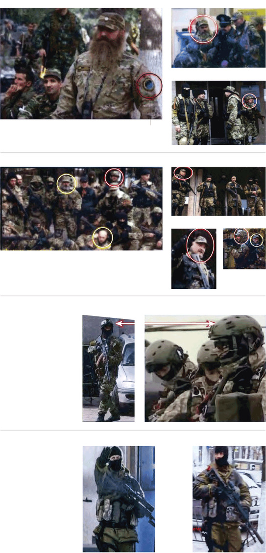 Agenţii Rusiei s-au amestecat printre grupurile locale paramilitare, în echipament de camuflaj, înarmaţi cu arme automate, umblând alături de "civilii" separatişti înarmaţi cu bâte şi cuţite.
