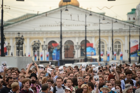 În Piaţa Manej din Moscova s-au adunat peste 3 mii de persoane cu portrete ale lui Navalny. Conform declaraţiilor poliţiei aproximativ 50 dintre acestea au fost deţinute, poliţie încercând să oprească demonstranţii mai vocali care strigau „Ruşine” „Putin este un hoţ!” şi să-i captureze pe cei care afişau portrete.
