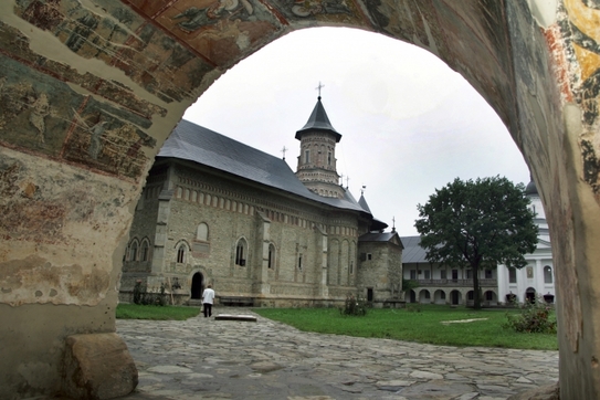 Actuala biserică, din incinta mânăstirii, a fost ctitorită de voievodul Ştefan cel Mare, care şi el era din neamul Muşatinilor, la finele secolului al XV-lea, având hramul „Înălţarea Domnului”. Actualmente, în mânăstire se află două biserici, două paraclise, turnul-clopotniţă, cu 11 clopote, un seminar teologic şi un muzeu cu o colecţie de artă bisericească şi sala tiparului. Specific este aghiazmatarul rotund, din faţa mânăstirii, unde se face sfinţirea apei, la hram. În biserică se mai află şi o icoană a Fecioarei Maria, zugrăvită în anul 665, despre care se spune că este făcătoare de minuni. Aşezământul are cea mai mare şi mai veche bibliotecă mânăstirească, cu 18.000 de volume, şi a avut o contribuţie decisivă la dezvoltarea culturii şi artei româneşti din Evul Mediu. În gropniţă, este înmormântat voievodul Ştefan, unchiul lui Ştefan cel Mare.