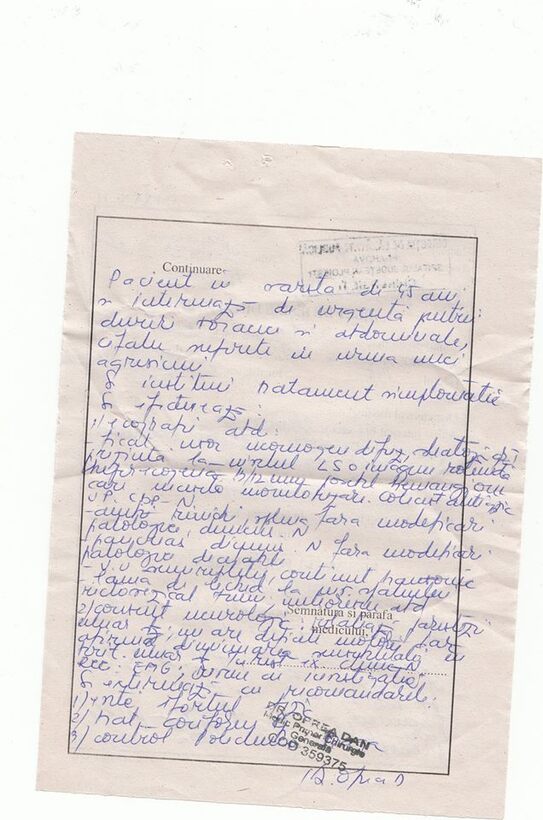 Medicii i-au recomandat lui Cristian Furcelea, pe biletul de ieşire, tratament, să evite efortul şi să se prezinte la Policlinică la control.