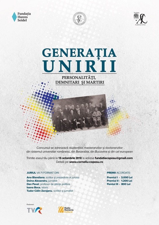 Nou concurs de eseuri al Fundaţiei Corneliu Coposu - 100 de ani de la Marea Unire