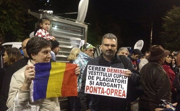 UPDATE ora 19:05. "Oprea face crime, Ponta îl susţine" şi "La brutărie, Oprea la brutărie", scandează manifestanţii. Pe pancarte se pot vedea mesaje precum "Oprea + Ponta demisia", "Cerem demisia vestitului cuplu de plagiatori arogant Ponta + Oprea", sau "Cosmin, ai murit în interes naţional" (Bogdan Cosmin Gigină - n.r.).