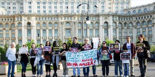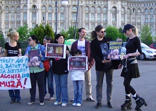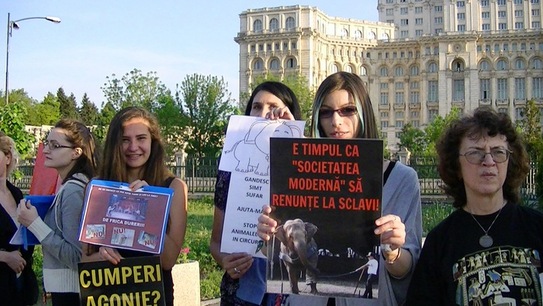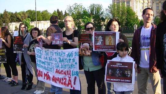 În faţa Palatului Parlamentului un grup de tineri şi-au arătat luni susţinerea faţă de proiectul legislativ propus de deputatul independent Remus Cernea care prevede interzicerea folosirii animalelor sălbatice la circ.