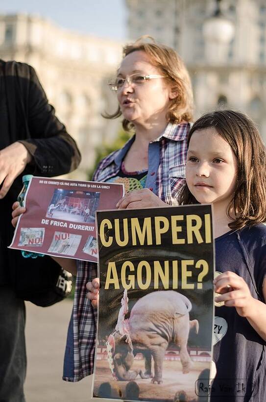 Este şi o problemă de educaţie a copiilor! Când îi ducem la circ, îi învăţăm că este bine să se bucure de răul altuia, de suferinţa unui animal. Am văzut copii care înţeleg aceste aspecte, însă pe care părinţii sau sistemul educaţional le ignoră. Din fericire există un curent favorabil acestor interdicţii în toată lumea, iar în foarte multe ţări au fost iniţiate petiţii care cer să se renunţe la utilizarea animalelor sălbatice în spectacole de circ considerate degradante, atrăgând totodată atenţia asupra relelor tratamente pe care le presupun dresajele.”, a declarat pentru Epoch Times unul dintre organizatorii evenimentului.