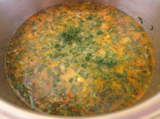 După ce stingeţi focul, se toarnă oul cu iaurt în ciorbă, amestecând continuu. La sfârşit, se adaugă leuşteanul şi mărarul tăiate mărunt.