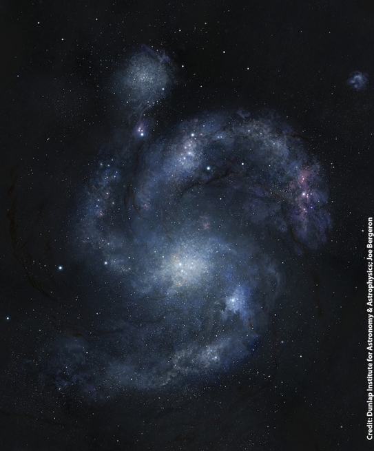 "La început am crezut că ar putea fi doar o iluzie şi că probabil am fost induşi în eroare de imagine", a declarat Shapley. "Ceea ce am descoperit când am analizat spectrele acestei galaxii este că braţele spiralate îi aparţin, nu a fost o iluzie".