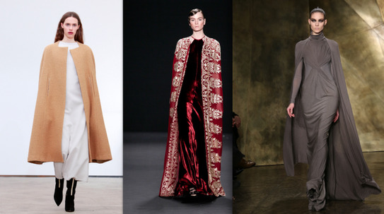 De asemenea, lungimea - şi încă mare - a fost un factor predominant printre designeri. Naeem Khan a prezentat o pelerină roşie uimitoare cu broderie de aur peste o rochie lungă de seară, iar Donna Karan a inclus pelerine în rochiile sale tipice.