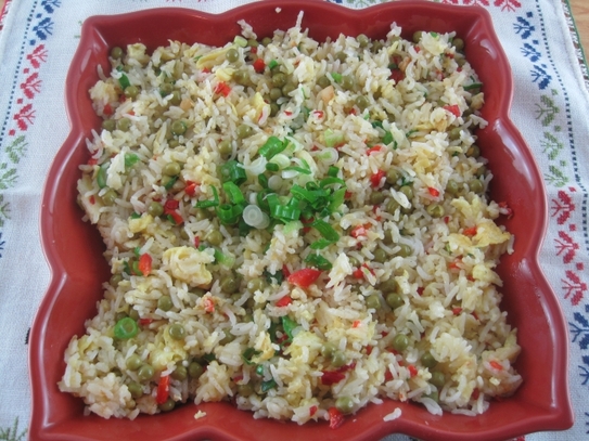 Această reţetă chinezească de orez cu ou şi legume este o reţetă tradiţională din estul îndepărtat, care în timp a fost adoptată şi de alte popoare. Se poate servi ca un fel de mâncare principal, antreu sau garnitură. Este un fel de mâncare versatilă care poate fi uşor adaptată preferinţelor dvs, legumele din reţetă putând fi înlocuite cu alte vegetale de sezon.