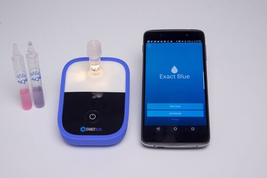 În acest context, kitul Exactblue vine cu soluţii inovatoare şi rapide de testare a apei, accesibile şi uşor de implementat, testarea apei făcându-se cu o precizie ridicată în timp real, prin tehnologie avansată cu nano particule, folosind pentru prelucrarea datelor o aplicatie instalată pe telefonul mobil.