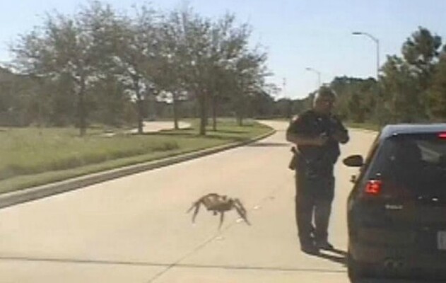 Clipul video de 30 secunde, postat pe Facebook de către Fulshear Police, pare să arate o creatură imensă care iese dintr-o zonă verde de pe marginea drumului şi aleargă spre un poliţist care stătea în picioare lângă o maşină pe care o oprise, nepăsător faţă de pericolul care îl „ameninţa”.