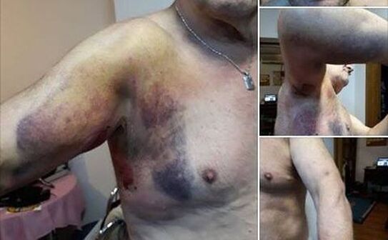 "Am hematoame, am fost bătut bestial de jandarmi, târât la duba Jandarmeriei. Am ieşit să protestez paşnic în Piaţă şi la un moment dat s-a furat un gard, nişte puşti au furat gardul jandarmilor şi efectiv mă amuzam când trăgeau unii şi alţii de gard, dar rămânând singur, că ceilalţi au fugit, jandarmii m-au spreiat cel puţin doi sau trei, mi-au făcut baie cu spray-uri. Eu am întins mâinile în faţă şi m-au bătut bestial, m-am sprijinit, la un moment dat am simţit scuturile şi după aceea m-au bătut bestial. M-au târât la dubă, în timp ce mă târau la dubă m-au lovit cu picioarele. Leziunile pe corp pe care le am sunt de la picioarele jandarmilor. M-au lovit în zona capului, am primit tomfe în cap în timp ce eram târât", a declarat Liciniu Miculeanu.