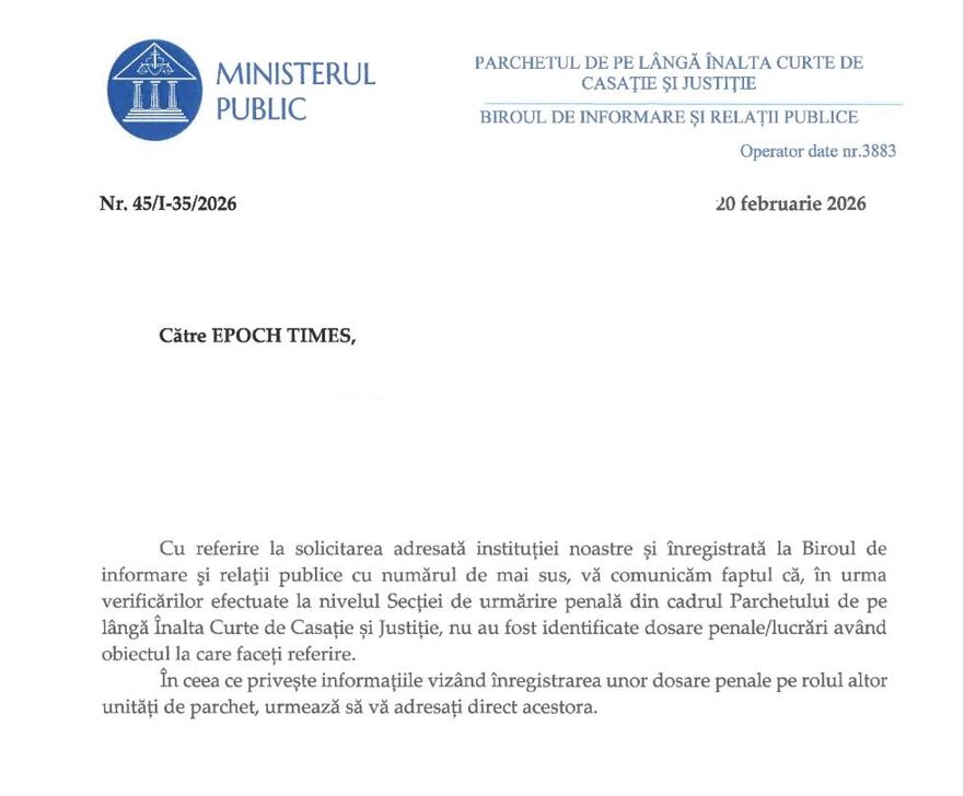 Redacţia noastră a întrebat Parchetul General dacă s-a autosesizat şi dacă a deschis vreo cercetare după apariţia acestei informaţii. Răspunsul, pe care îl vedeţi mai jos a fost: NU.