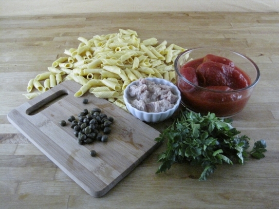 Vi se întâmplă câteodată să ajungeţi acasă obosiţi şi vreţi să încropiţi ceva rapid, simplu şi gustos? Vă recomandăm paste în sos de roşii cu peşte şi capere. Este o reţetă tradiţională italiană care se pregăteşte în mai puţin de 20 minute şi se poate servi ca prânz, gustare, sau cină.