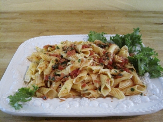 Paste în sos de roşii cu peşte şi capere - o mâncare rapidă şi gustoasă
