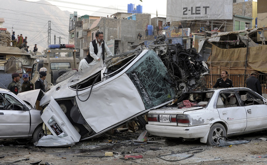 Poliţia din capitala provinciei Baluchistan susţine că un atentator sinucigaş s-a aruncat în aer într-o sală aglomerată de biliard, fiind urmat de un al doilea atentator cu câteva minute mai târziu. Exploziile gemene au ucis 81 de persoane, printre care şi persoane din echipa de salvare. Poliţia a declarat că cele mai multe decese au avut loc după a doua explozie, pentru ca aceasta a provocat prăbuşirea acoperişului clădirii.