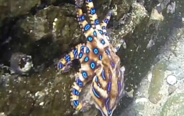 Un blogger australian a filmat un exemplar de caracatiţă cu inele albastre în piscina naturală populară din Kiama, New South Wales, Australia. Înotătorii erau inconştienţi de pericolul care se ascundea sub picioarele lor.