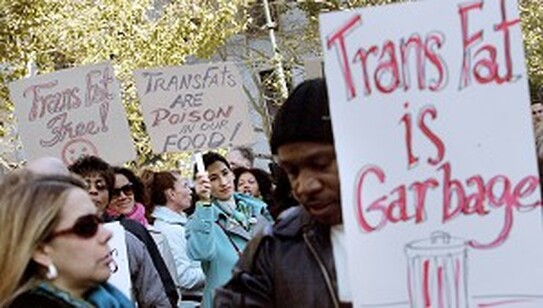 Una dintre cele mai mari povesti de sanatate din vremurile recente este miscarea de a interzice acizii grasi trans (grasimi trans) din alimentele servite in restaurantele si fast food-urile din New York City. Aparent, un plan voluntar pentru inlaturarea acestor grasimi din mancare nu a functionat bine si acum comisionarul sanatatii din New York, Thomas Frieden, a repornit initiativa cu o serie de audieri publice care ar putea duce la disparitia grasimilor trans din meniurile New York-ului.