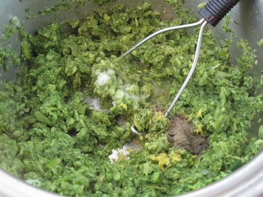 Când apa începe să fiarbă, puneţi o linguriţă de sare, apoi adăugaţi bucăţile de broccoli şi ceapa tăiată. Le fierbeţi cam 10 minute, până când se înmoaie bine, după care le strecuraţi. Cât sunt încă fierbinţi, adăugaţi untul, apoi le zdrobiţi bine până când devin de consistenţa unui piure fin. Dacă folosiţi un blender piureul se face foarte uşor şi repede. Când aţi obţinut pasta de consistenţa dorită, adăugaţi coaja şi zeama de la o jumătate de lămâie, apoi potriviţi de piper şi sare. Deliciosul piure e gata. E indicat să-l serviţi cât e fierbinte.