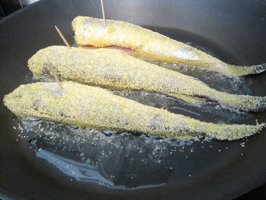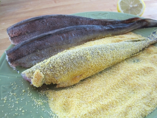 Cum sezonul pescuitului e acum în toi, puteţi folosi peşte proaspăt de care aveţi la îndemână. Pentru acest meniu, am folosit merlucius. Peştele curăţat şi spălat în mai multe ape, se zvânta cu ajutorul unui prosop de hârtie, sau tifon. Se sărează, apoi se lasă cel puţin o jumătate de oră, să stea deoparte. Înainte de prăjire, peştele se dă prin faină de mălai.