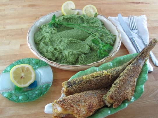 Peşte prăjit cu piure de broccoli - o combinaţie vibrantă