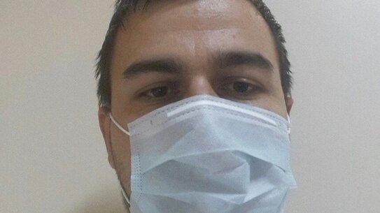 „În dimineaţa zilei de 23 martie, la sfârşitul gărzii de noapte în secţia cu bolnavii cei mai gravi cu COVID-19, i-am spus şefului meu că am febră acesta ne-a ajutat să fim testaţi toţi de urgenţă. A doua zi am aflat că sunt infectat eu şi alţi 3 colegi. Eu cu soţia mea aşteptăm un copil. Ea este însărcinată în ultima lună cu al doilea nostru copil, pe primul l-am pierdut la scurt timp după naştere.