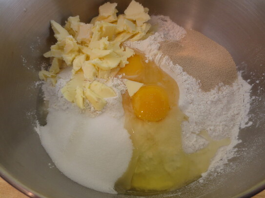 Făina se cerne într-un vas adânc. Dacă folosiţi drojdie proaspătă, aceasta se amestecă cu 2 linguri de lapte călduţ şi o lingură de zahăr. Se face o adâncitură în mijlocul făinii şi se toarnă maiaua. Se lasă 15-20 minute să crească puţin. Dacă folosiţi drojdie uscată, aceasta se adaugă direct în făină alături de celelalte ingrediente.
