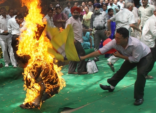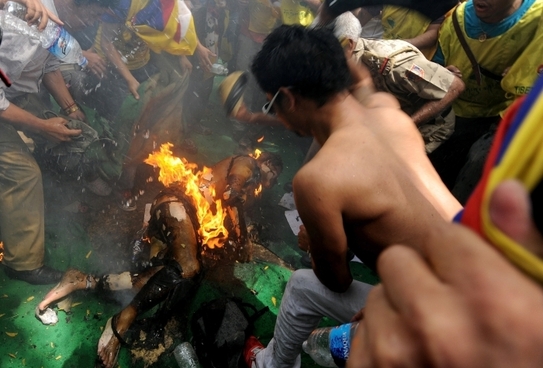 Tibetanii au ales în ultimii ani să protesteze împotriva conducerii chineze dându-şi foc. Conform grupurilor pentru drepturile omului, în anul 2012, peste 80 de tibetani au organizat astfel de proteste extreme, atât în Tibet cât şi din alte regiuni ale Chinei, în urma cărora cei mai mulţi dintre ei şi-au pierdut viaţa.
