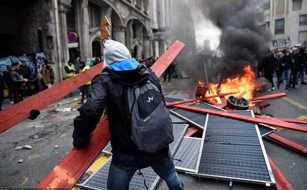 Poliţia a fost forţată să folosească gaze lacrimogene în apropierea punctelor turistice, precum muzeul de artă modernă Centre Pompidou, unde unii demonstranţi au încercat să ridice baricade şi să le dea foc, distrugând o staţie de autobuz.