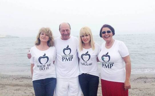 După ce Elena Udrea a postat vineri pe contul său de Facebook o serie de poze în care preşedintele Traian Băsescu stă, la malul mării, alături de „tinerii şi femeile din PMP”, purtând un tricou pe care scrie „vote for PMP”, premierul Victor Ponta nu a pierdut ocazia să-şi taxeze rivalul politic, ameninţând că va sesiza Curtea Constituţională pentru acest lucru. În replică, şeful statului a catalogat discursul drept o „glumă voiculesciană”, aluzie la Dan Voiculescu care a cerut de nenumărate ori sancţionarea sau suspendarea sa.