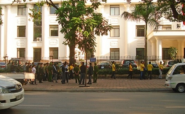 La ora 9 doua autobuze cu politisti in uniforma si in haine civile au ajuns la fata locului. Intregul grup de practicanti a incercat sa plece, dar cu totii au fost impinsi in autobuze si dusi la centrul de detentie Loc Ha, la 16 km nord de Hanoi.