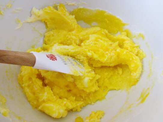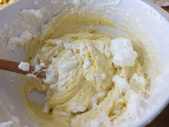 Gălbenuşurile se freacă cu zahărul şi untul, apoi se adaugă laptele. La urmă se adaugă făina amestecată cu praful de copt şi albuşurile bătute spumă.