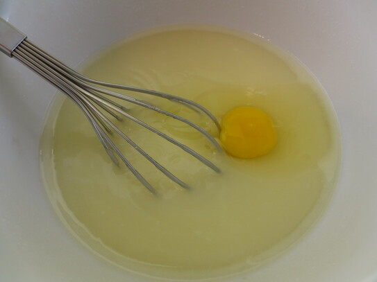 În alt vas, se amestecă zahărul, uleiul şi iaurtul. Se adaugă primul ou şi se mixează până când acesta se încorporează, apoi se adaugă următorul ou. Se procedează la fel, cu restul de ouă.