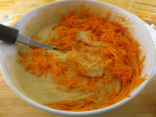 La sfârşit, se adaugă morcovii raşi fin, amestecându-se uşor prin răsturnare.