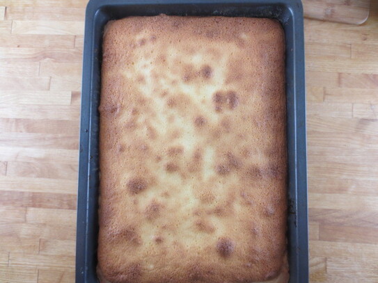 După ce s-a copt (se verifică folosind testul cu scobitoarea), blatul se scoate din cuptor şi se lasă deoparte să se răcească complet.