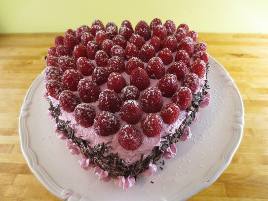 Indiferent că planificaţi o seară romantică sau sărbătoriţi Valentine - ziua îndrăgostiţilor ori Dragobetele, vă sugerăm această prăjitură în formă de inimă, cu un blat pufos cu nucă şi o spumă fină din dulceaţă de trandafir, garnisită cu ciocolată şi zmeură. Este o prăjitură elegantă, uşoară şi extrem de parfumată, care satisface cele mai sofisticate gusturi.