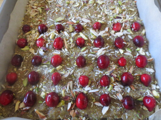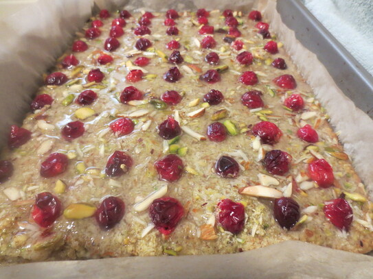 Prăjitura cu pastă de migdale, fistic şi merişoare – un adevărat deliciu