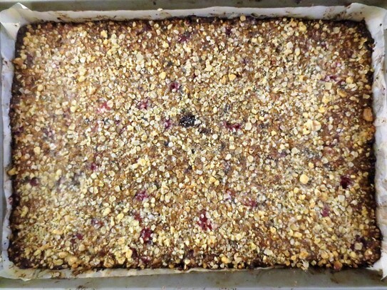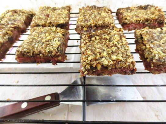 După ce tava se scoate din cuptor, se lasă deoparte cam 10 minute să se răcească puţin, apoi prăjitura se taie în 15 pătrate. Bucăţile de prăjitura se lasă în continuare în tavă până când se răcesc complet.
