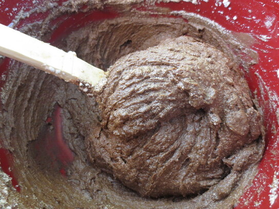 În celălalt castron se adaugă pe rând făina amestecată cu cacao şi cealaltă jumătate de spumă de ou.