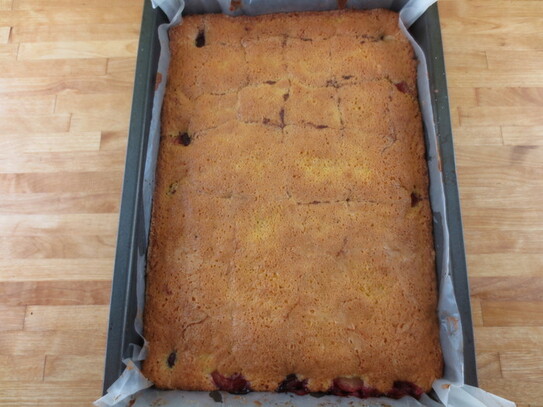 După aproximativ 30 de minute prăjitura se scoate din cuptor. Partea de deasupra a aluatului copt trebuie să fie de culoare auriu ruginie, iar marginile să se desprindă uşor de tavă.
