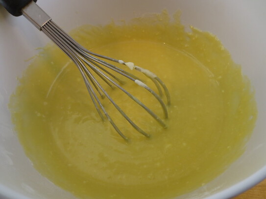 Între timp se prepară bezeaua. Se bat cele trei albuşuri lăsate deoparte, iar când spuma este tare, se adaugă treptat zaharul pudră, bătându-se în continuare până când spuma devine lucioasă şi fermă.