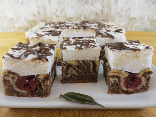 Prăjitura tigru cu vişine şi bezea - o combinaţie plăcută de gusturi şi culori
