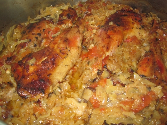 Prepeliţă pe varză la cuptor