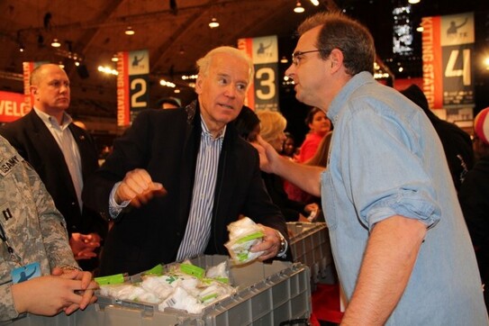 Printre voluntarii care umpleau pachetele s-a aflat şi vicepreşedintele Joe Biden, soţia lui Jill Biden şi familia sa.