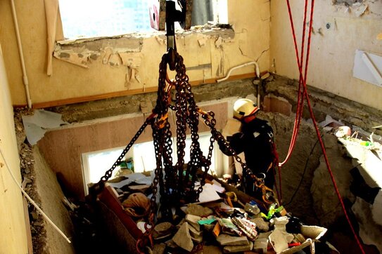 Totodată, acesta a menţionat că duminică lucrările au durat până la ora 2 noapea, astfel că placa de beton cea mai grea care prezenta pericol pentru căderea celorlalte etaje a fost evacuată. Tot în noaptea zilei de duminică au fost evacuate cadavrele celor două persoane aflate sub plăcile de beton, intervenţie care nu a fost posibilă până atunci pentru că exista pericol de risc să cadă şi celelalte plăci dintre etaje.