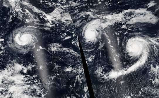 O fotografie publicată de NOAA, care prezintă uraganele Kilo, Ignacio şi Jimena, a generat temeri în rândul meteorologilor. Este pentru prima dată când trei furtuni de categoria a 4-a au fost văzute în centrul şi estul Oceanului Pacific în acelaşi timp, conform Weather Channel. La uraganele de categoria a 4-a vântul poate atinge viteze cuprinse între 209 kmh şi 251 km/h.