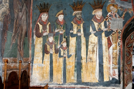 Pictura, realizată în anul 1532, restaurată în 1844 şi după 1990, prin grija UNESCO, impresionează atât prin maniera de execuţie cât şi prin programul iconogafic unitar şi coerent. Nuanţele culorilor sunt calde, alese cu mare grijă, iar liniile sunt desăvârşite. Pictura exterioară este degradată, însă mai pot fi încă admirate câteva scene.